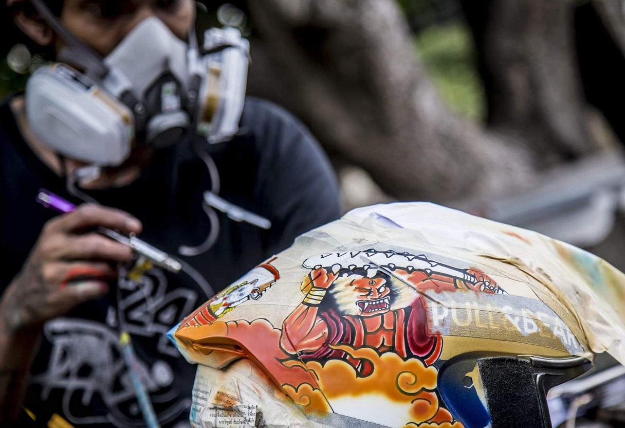 Explore SKEL Customs unique helmet art collection showcasing craftsmanship and creativity.